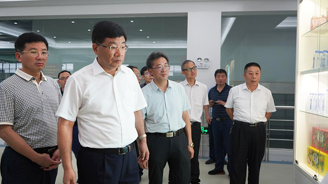 何树山一行首先来到大别山野岭饮料公司生产车间,参观剐水生产线运作,对瓶胚制成、水处理、灌装、包装等生产过程进行一一了解,并高度赞扬了剐水的优良水质与清甜口感,还就公司旗下各类产品发展现状进行亲切交流。